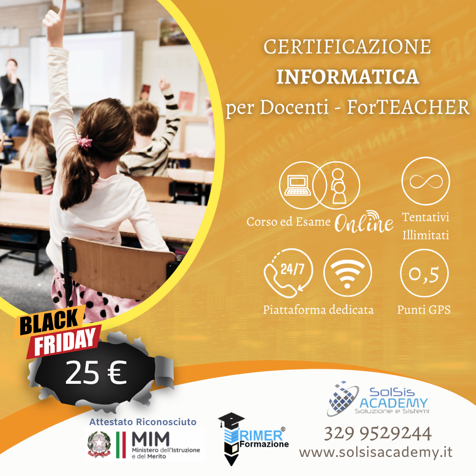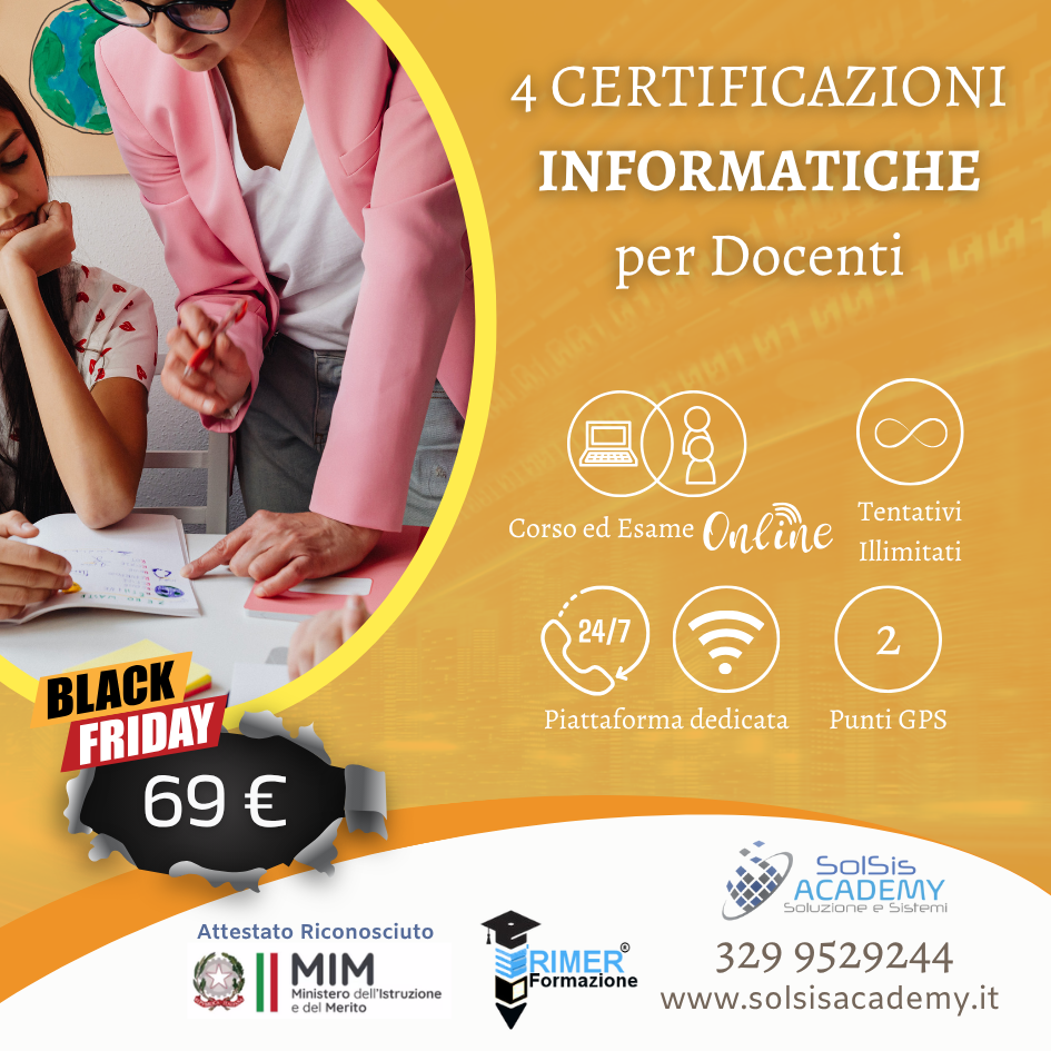 Il corso vale 0.5 punti per le GPS e può essere inserito nelle 4 certificazioni informatiche da utilizzare in occasione dell’inserimento in graduatoria docenti o per aggiornamenti.