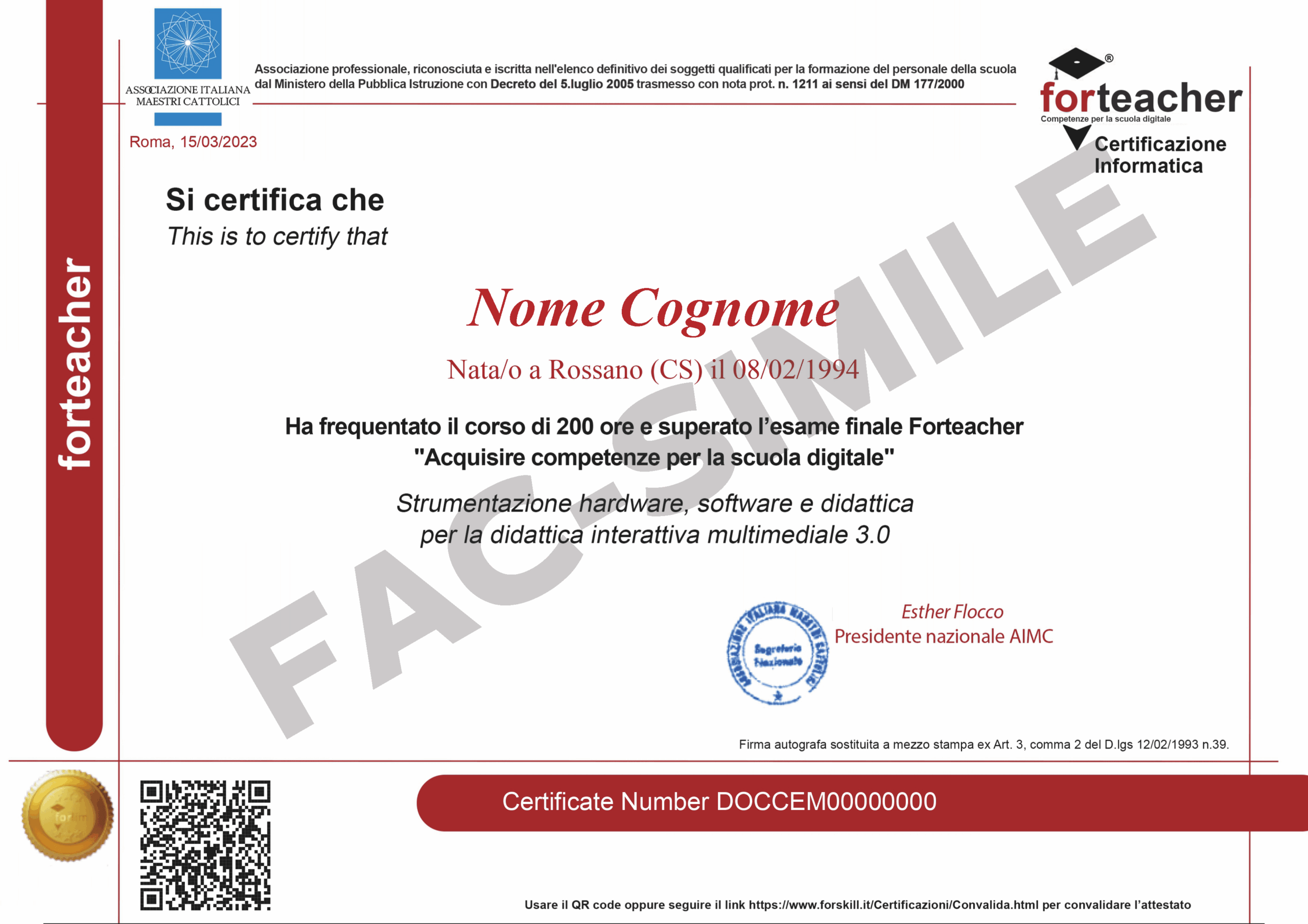 Il certificato sarà emesso e disponibile per il download solo a seguito del superamento dell’esame finale del corso, ripetibile tutte le volte che sarà necessario.