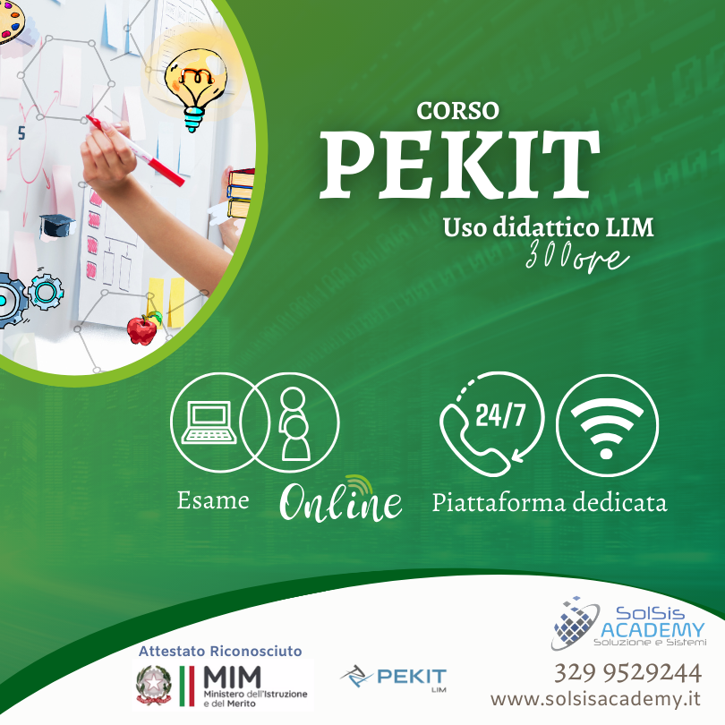 Il corso sull’utilizzo didattico della LIM è finalizzato alla preparazione agli esami di certificazione Pekit LIM ed al conseguimento dell’Attestato sull’uso didattico della LIM valutato con 0.5 punti nelle graduatorie GPS. Analogamente alla certificazione Pekit LIM, il corso è stato progettato secondo quanto previsto dal framework europeo, e fornisce gli strumenti utili per soddisfare i fabbisogni formativi dei docenti secondo il quadro di competenze EQF sviluppato da UNESCO 2011 (Unesco ICT Competence Framework for Teachers) allo scopo di mettere ogni attore della Scuola digitale nelle condizioni di indirizzare il proprio contributo coniugando Saperi, Abilità, Certificazioni e Competenze.